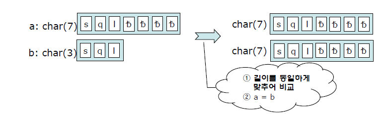 2) CAHR와 VARCHAR2 데이터 타입의 비교방법