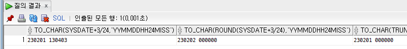 | TRUNC | 날짜를 절삭 | 날짜 |