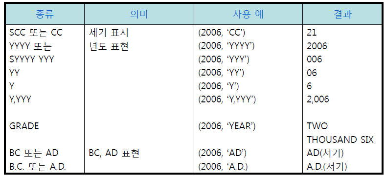 - 숫자나 날짜 타입을 문자와 함께 결합하거나 보고서 양식에 맞추기 위해 주로 사용