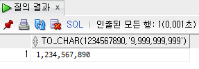 | , | 특정위치에 ','표시 | (1234, '99,999') | 1,234 |