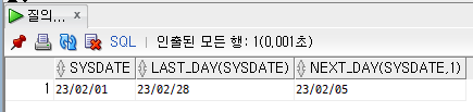 | SYSDATE | 시스템의 현재 날짜 | 날짜 |