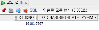 SELECT STUDNO, TO_CHAR(BIRTHDATE, 'YYMM')