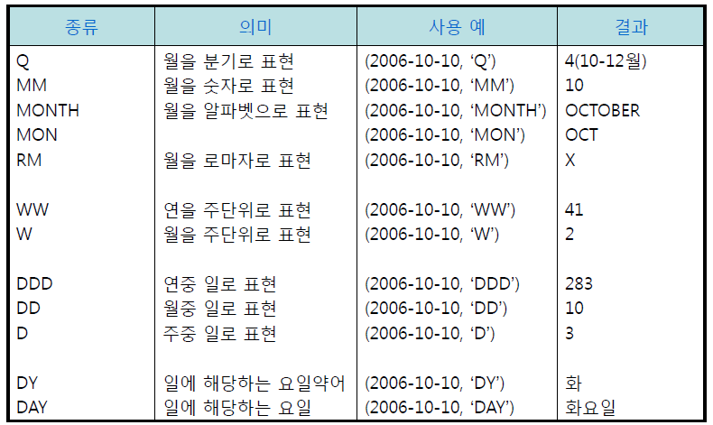 2) 날짜 함수의 종류