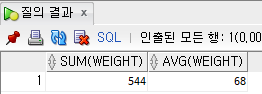 예제) 101번 학과 학생들의 몸무게 평균과 합계 출력