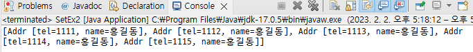 addrs.add(addr); // 중복을 배제하기 때문에 출력시 3개만 나옴