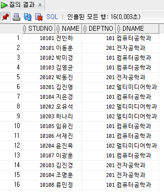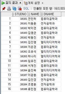 SELECT STUDNO, NAME, DEPTNO, DNAME