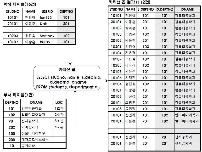 JOIN DEPARTMENT ON STUDENT.DEPTNO = DEPARTMENT.DEPTNO