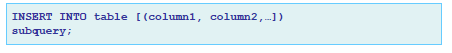- INSERT 명령문에서 서브쿼리 절을 이용