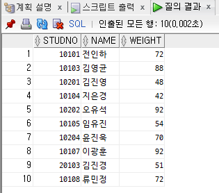 예제) 학생테이블에서 2학년 이상의 학생을 검색하여 HEIGHT_INFO 테이블에는 학번, 이름, 키 WEIGHT_INFO 테이블에는 학번, 이름, 몸무게를 각각 입력