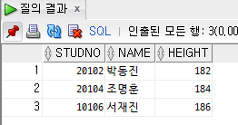 INTO HEIGHT_INFO VALUES(STUDNO, NAME, HEIGHT)