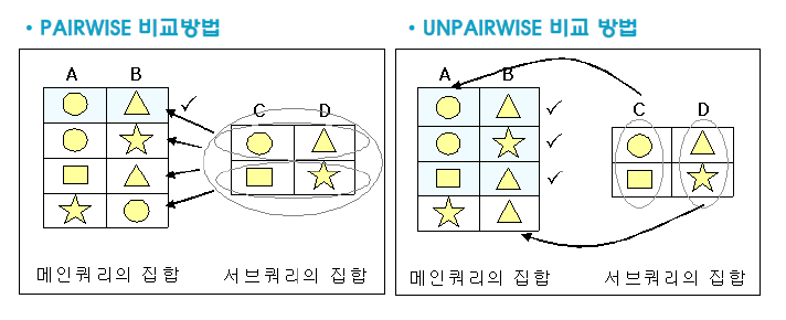 UNPAIRWISE : 칼럼별로 개별적으로 나누어서 비교한 후, AND연산을 하는 방식 (개별조건)