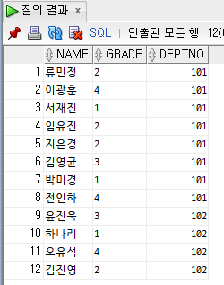- 서브쿼리에서 반환되는 결과 행이 하나 이상일 때 사용하는 서브쿼리