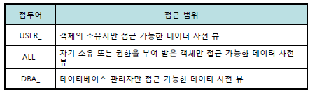 -용도에 따라 user, all, dba접두어를 사용하여 분류