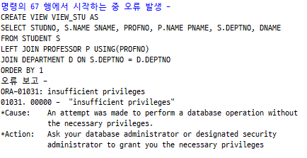 ↓OR REPLACE 구문 삽입 (없으면 만들고 있으면 변경하라는)