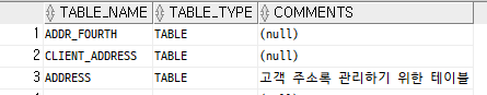 COMMENT ON TABLE ADDRESS IS '고객 주소록 관리하기 위한 테이블';
