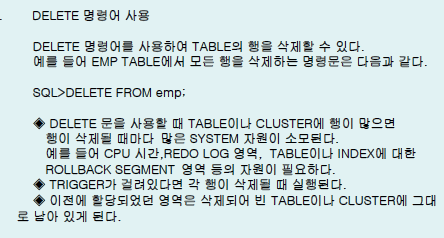 기존 테이터만 삭제하는 명령이며, ROLLBACK 가능