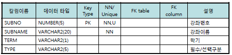 * 강좌(subject) 테이블 인스턴스