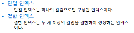 - SQL명령문의 처리속도를 향상시키기 위한 컬럼을 대상으로 생성하는 객체