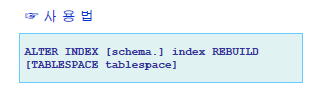 - 인덱스 재구성은 인덱스를 정의한 테이블의 칼럼 값에 대해 변경 작업이 자주 발생하여, 불필요하게 생성된 인덱스 내부 노드를 정리하는 작업