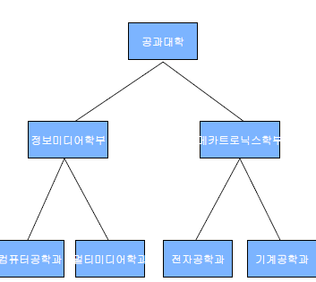 - 관계형 데이터 베이스에서 데이터간의 부모관계를 표현할 수 있는 칼럼을 지정하여 계층적인 관계를 표현