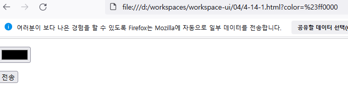컬러피커에서 색상을 선택한 후 전송버튼을 누르면