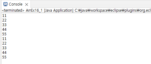 arrInt2의 3, 4번 인덱스는 대입되지 않아 arrInt를 출력해보면 3, 4번 인덱스는 정수타입의 기본값인 0으로 출력된다.