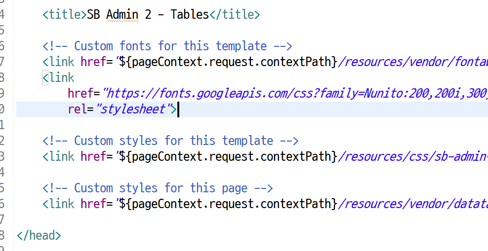 템플릿 안에 있는 5개의 폴더 (css, img, js, scss, vendor) 를 resources폴더에 복붙하기