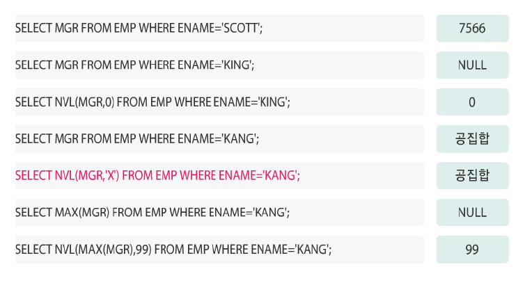 1. 그룹함수의 종류 1) count함수 (많이 사용) 테이블에서 조건을 만족하는 행의 갯수를 반환 1-2) 사용법 - '*'은 NULL을 포함한 모든 행의 갯수 - DISTINCT는 중복되는 값을 제외한 행의 개수 - 문자, 숫자, 날짜타입을 쓸수 있다. 예제1) 101번 학과 교수중에서 보직수당을 받는 교수의 수를 출력 SELECT COUNT(COMM) FROM PROFESSOR WHERE DEPTNO = 101; ※ 주의할점 집계함수끼리는 같은자리에 올 수 있지만 일반컬럼과 집계함수는 같은자리에 올 수 없다. SELECT COUNT(*), COMM FROM PROFESSOR WHERE DEPTNO = 101 AND COMM IS NOT NULL; SELECT COUNT(*), SUM(COMM), A..