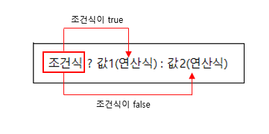 2023-01-11 09:30 ~ 18:30 수업진행 ※ 수업내용 1. 삼항연산 삼항연산은 3개의 항으로 이루어진 연산이다. 특정 조건식에 따라 조건이 참이나 거짓이냐에 따라 다르게 실행할 수 있는 연산으로 if문을 이용한 조건문과 동일한 역할을 하며 if문으로도 구현이 가능해 사용빈도가 높진않다. 짧은코드로 간단하게 조건식을 구현할 때 종종 사용된다. 아래 표를 보자 조건식이 참(true)이면 값1 또는 연산식이 실행되며, 그렇지 않으면(false) 값2가 실행된다. 아래 예제를 보자. 1 2 3 4 5 6 7 8 9 10 11 12 13 package chapter4; public class OpEx7 { public static void main(String[] args) { int score = ..